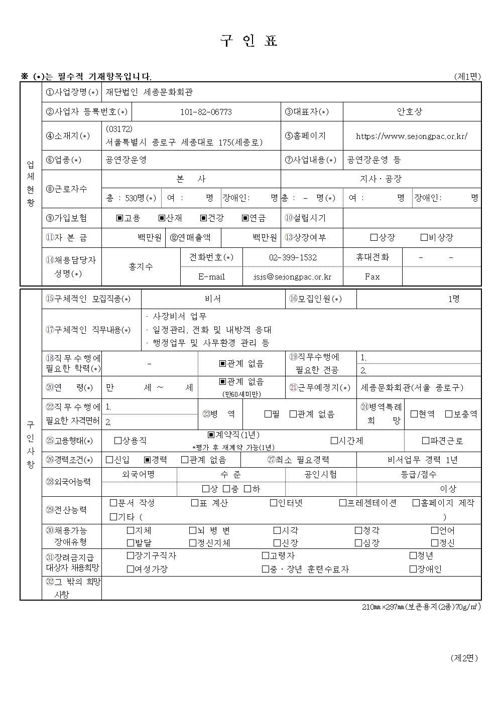 [Àç´Ü¹ýÀÎ ¼¼Á¾¹®È­È¸°ü ºñ¼­ ä¿ë °ø°í]