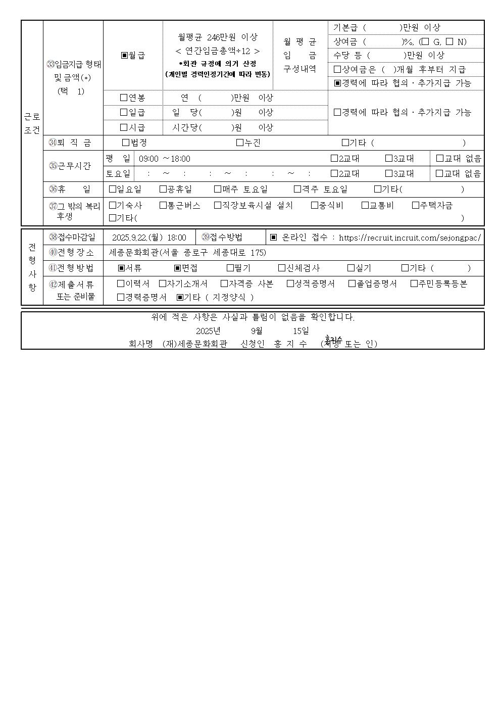 Á¦¸ñ [ºñ¼­Ã¤¿ë] ¼¼Á¾¹®È­È¸°ü (~2025/9/22)