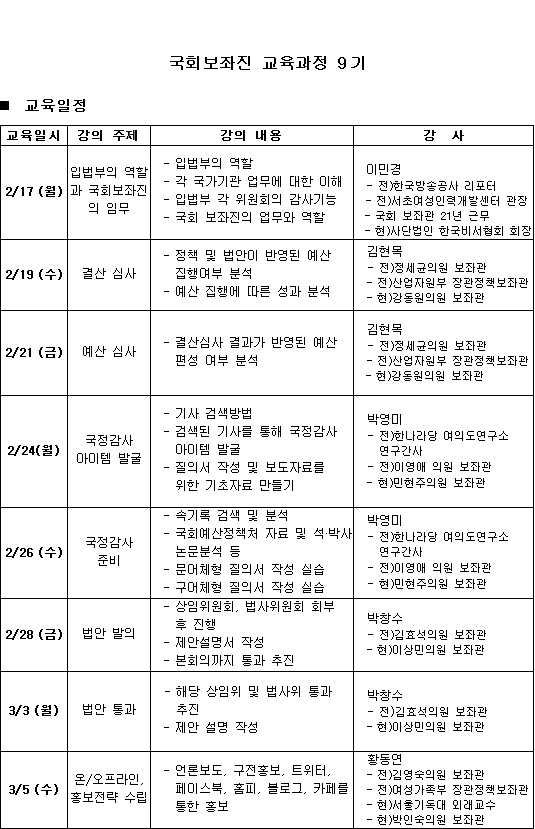 ±¹È¸º¸ÁÂÁø°úÁ¤ Á¦ 9±â ¸ðÁý