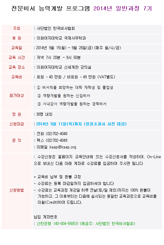 2014³â Àü¹®ºñ¼ ´É·Â°è¹ß ÇÁ·Î±×·¥ ÀϹݰúÁ¤ 7±â ¸ðÁý