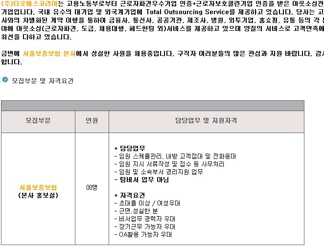 Ãâó: ¿öÅ©³Ý http://www.work.go.kr/empInfo/empInfoSrch/detail/retrivePriEmpDtlView.do?iorgGbcd=CSI&callPage=detail&wantedAuthNo=26004060&rtnUrl=/empInfo/empInfoSrch/list/dtlEmpSrchList.do
