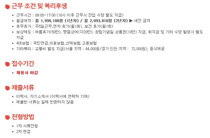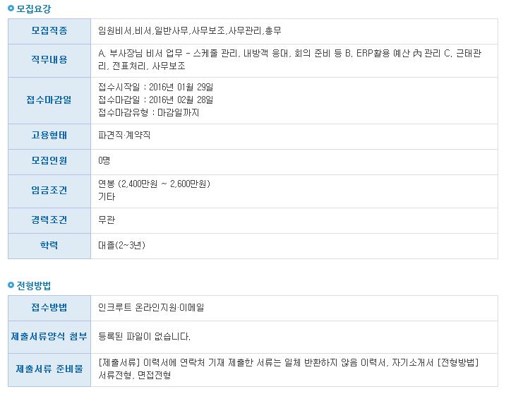 Ãâó : http://www.work.go.kr/empInfo/empInfoSrch/detail/retrivePriEmpDtlView.do?iorgGbcd=CIN&callPage=detail&wantedAuthNo=1601290026010&rtnUrl=/empInfo/empInfoSrch/list/dtlEmpSrchList.do?len=0&tot=0&relYn=N&totalEmpCount=0&jobsCount=0&lastIndex=1&siteClcd=all&academicGbnoEdu=noEdu&firstIndex=1&pageSize=10&recordCountPerPage=10&preferentialGbn=all&rowNo=0&softMatchingPossibleYn=N&benefitSrchAndOr=O&keyword=%EB%B9%84%EC%84%9C%EC%A7%81&charSet=EUC-KR&startPos=0&collectionName=tb_workinfo&softMatchingMinRate=66&softMatchingMaxRate=100&certifiYn=N&preferentialYn=Y&preferential=all&&empTpGbcd=1&onlyTitleSrchYn=N&onlyContentSrchYn=N&serialversionuid=3990642507954558837&resultCnt=10&sortOrderBy=DESC&sortField=DATE&pageIndex=6&pageUnit=10