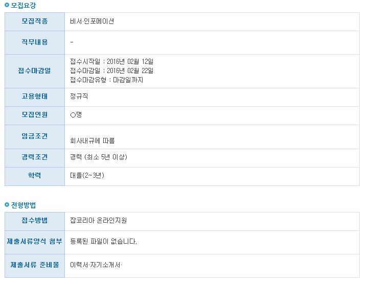 Ãâó : http://www.work.go.kr/empInfo/empInfoSrch/detail/retrivePriEmpDtlView.do?iorgGbcd=CJK&callPage=detail&wantedAuthNo=21437076&rtnUrl=/empInfo/empInfoSrch/list/dtlEmpSrchList.do?len=0&tot=0&relYn=N&totalEmpCount=0&jobsCount=0&lastIndex=1&siteClcd=all&academicGbnoEdu=noEdu&firstIndex=1&pageSize=10&recordCountPerPage=10&preferentialGbn=all&rowNo=0&softMatchingPossibleYn=N&benefitSrchAndOr=O&keyword=%EB%B9%84%EC%84%9C%EC%A7%81&charSet=EUC-KR&startPos=0&collectionName=tb_workinfo&softMatchingMinRate=66&softMatchingMaxRate=100&certifiYn=N&preferentialYn=Y&preferential=all&&empTpGbcd=1&onlyTitleSrchYn=N&onlyContentSrchYn=N&serialversionuid=3990642507954558837&resultCnt=10&sortOrderBy=DESC&sortField=DATE&pageIndex=2&pageUnit=10