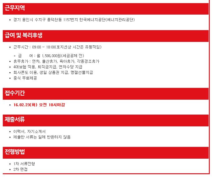 Ãâó : http://www.work.go.kr/empInfo/empInfoSrch/detail/retrivePriEmpDtlView.do?iorgGbcd=CIN&callPage=detail&wantedAuthNo=1602180037458&rtnUrl=/empInfo/empInfoSrch/list/dtlEmpSrchList.do?len=0&tot=0&relYn=N&totalEmpCount=0&jobsCount=0&lastIndex=1&siteClcd=all&academicGbnoEdu=noEdu&firstIndex=1&pageSize=10&recordCountPerPage=10&preferentialGbn=all&rowNo=0&softMatchingPossibleYn=N&benefitSrchAndOr=O&keyword=%EB%B9%84%EC%84%9C%EC%A7%81&charSet=EUC-KR&startPos=0&collectionName=tb_workinfo&softMatchingMinRate=+66&softMatchingMaxRate=100&certifiYn=N&preferentialYn=Y&preferential=all&&empTpGbcd=1&onlyTitleSrchYn=N&onlyContentSrchYn=N&serialversionuid=3990642507954558837&resultCnt=10&sortOrderBy=DESC&sortField=DATE&pageIndex=1&pageUnit=10