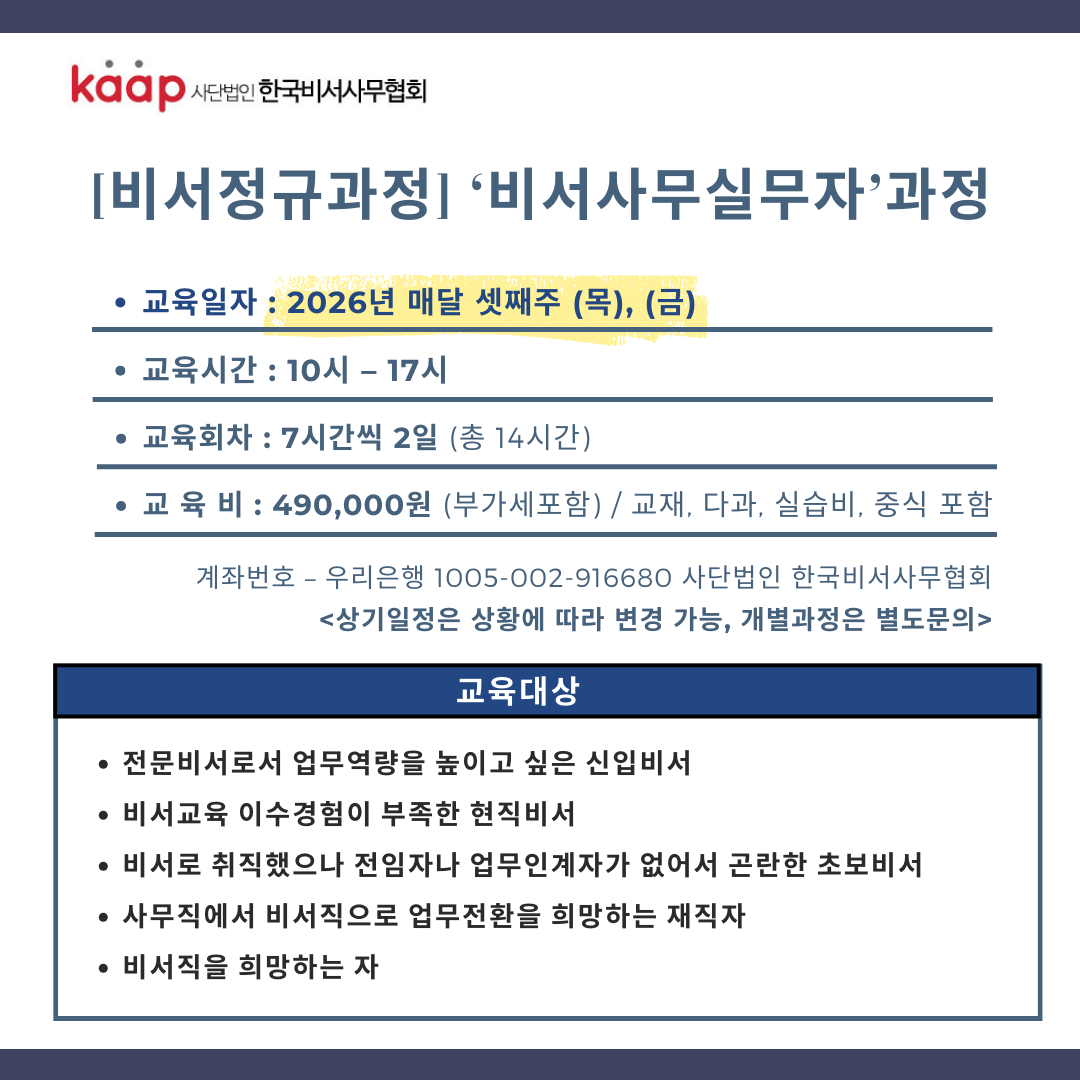 (»ç)Çѱ¹ºñ¼»ç¹«Çùȸ ¿¬°£±³À°ÀÏÁ¤(ºñ¼»ç¹«½Ç¹«ÀÚ°úÁ¤) ¾È³»µå¸³´Ï´Ù.