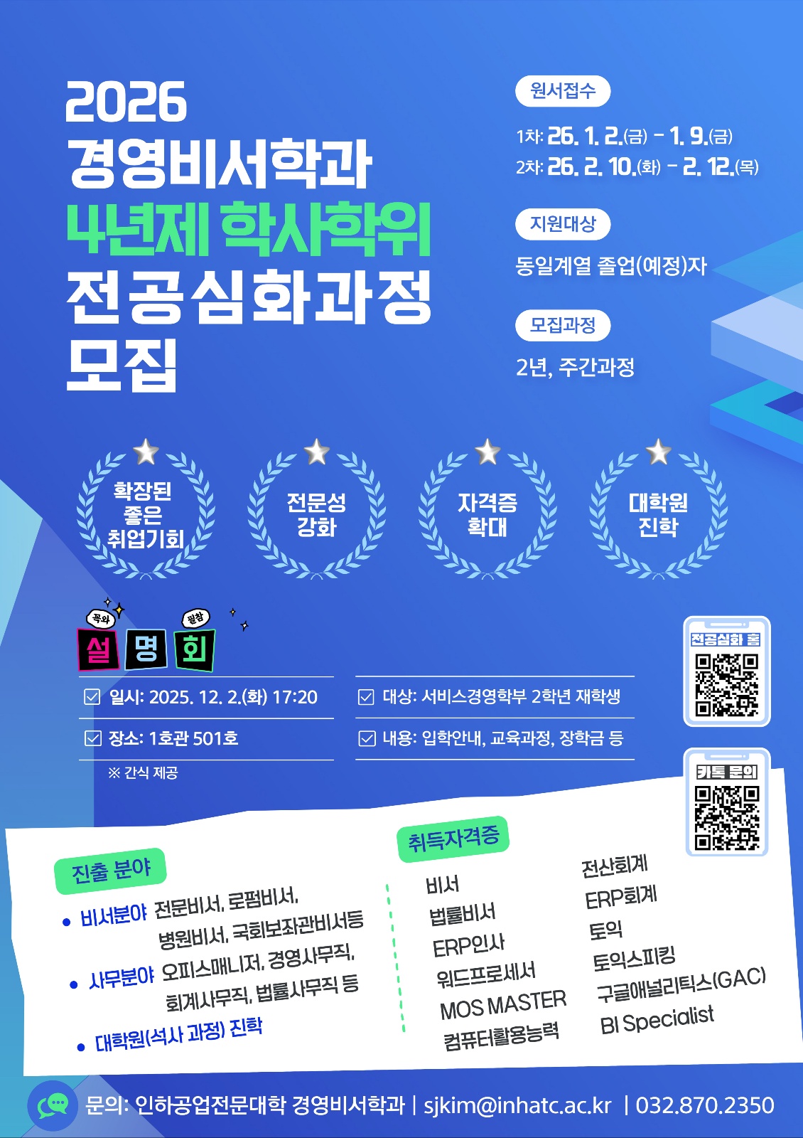 ÀÎÇϰø¾÷Àü¹®´ëÇÐ °æ¿µºñ¼Çаú¿¡¼ 4³âÁ¦ ÇлçÇÐÀ§ ÃëµæÀÌ °¡´ÉÇÑ