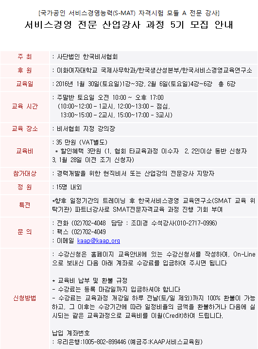¼ºñ½º°æ¿µ Àü¹® »ê¾÷°»ç °úÁ¤ 5±â ¸ðÁý ¾È³»
