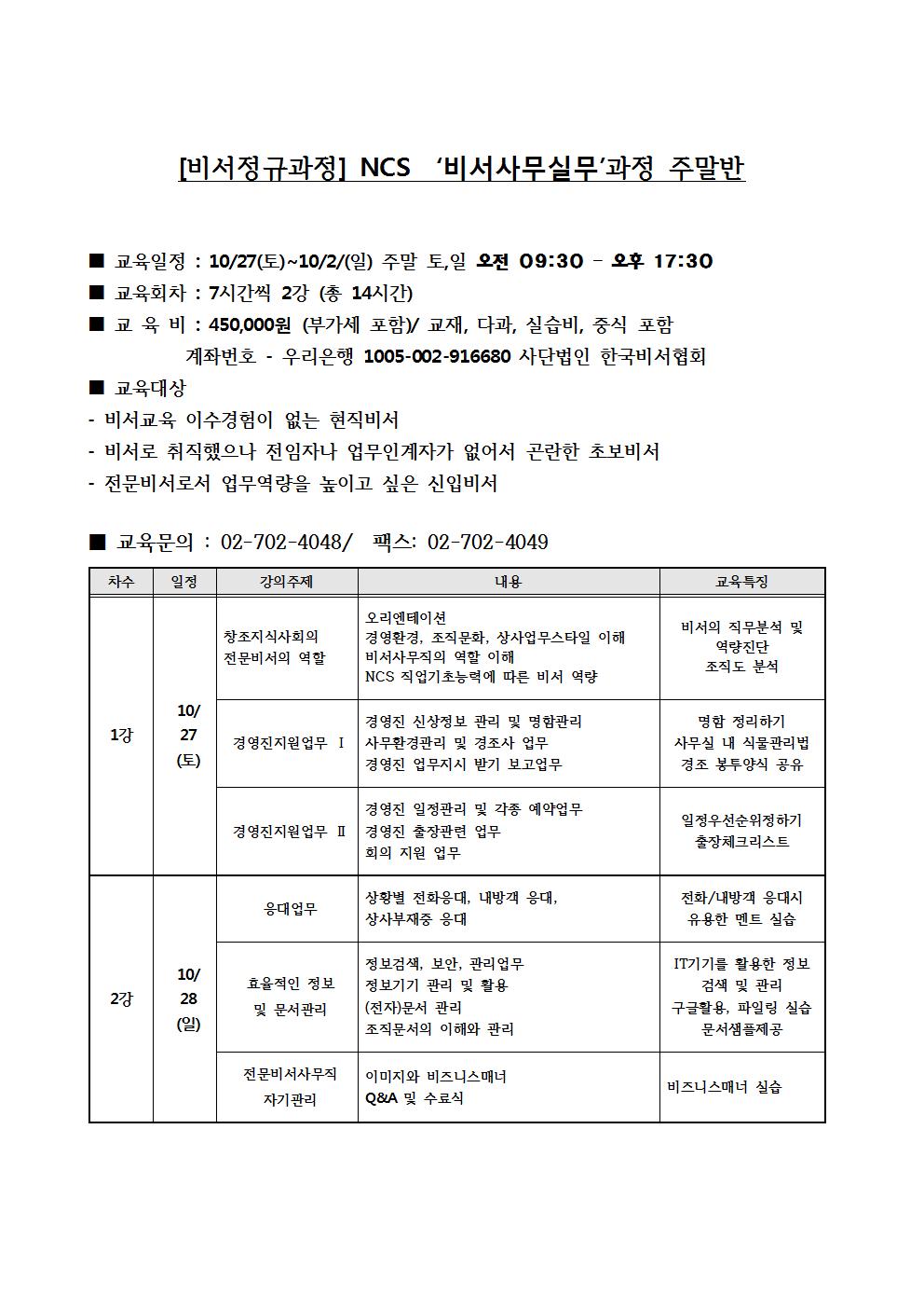 [10/27 ¸¶°¨] ºñ¼»ç¹«½Ç¹«ÀÚ°úÁ¤ °³°