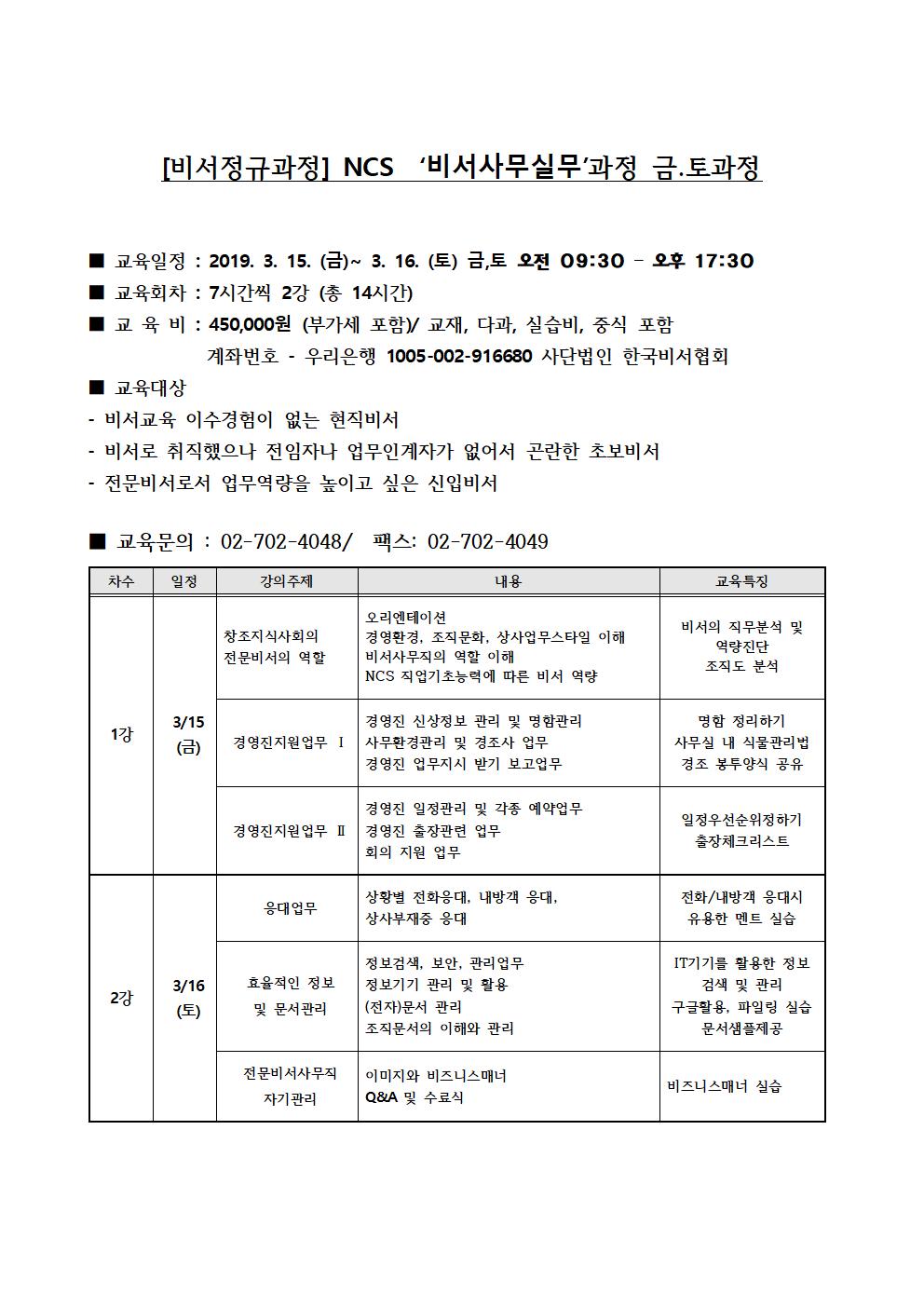 [3/15 ±ÝÅ丶°¨] ºñ¼»ç¹«½Ç¹«ÀÚ°úÁ¤ °³° (~3/11±îÁö Á¢¼ö)