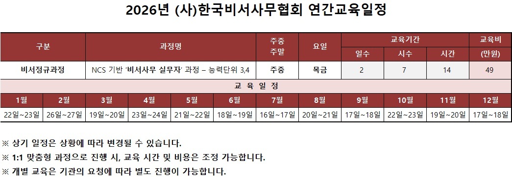 [2026³â ¿¬°£±³À°ÀÏÁ¤ ¾È³»] ºñ¼»ç¹«½Ç¹«ÀÚ°úÁ¤