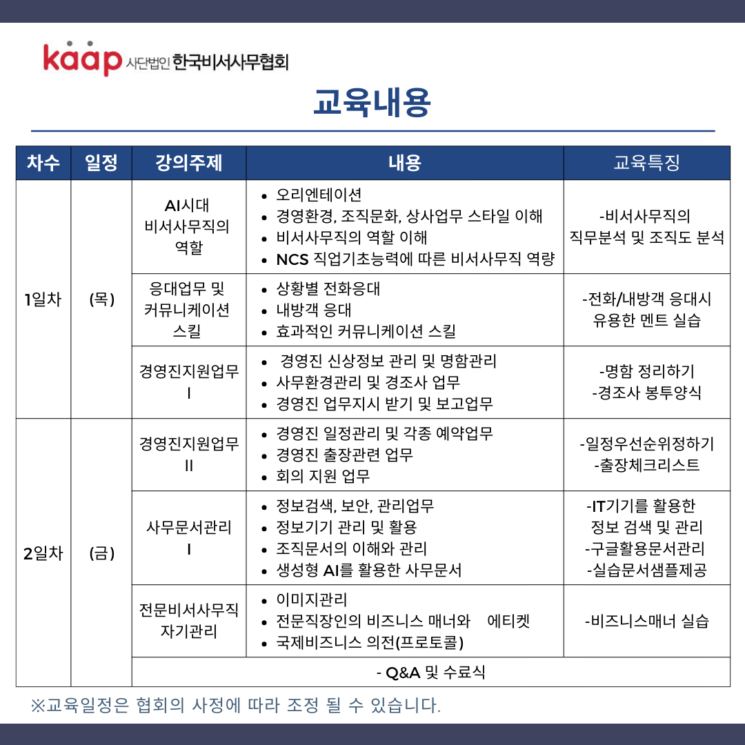 (»ç)Çѱ¹ºñ¼»ç¹«Çùȸ ¿¬°£±³À°ÀÏÁ¤(ºñ¼»ç¹«½Ç¹«ÀÚ°úÁ¤) ¾È³»µå¸³´Ï´Ù.