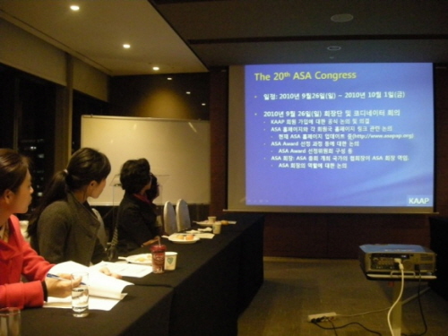 2³â¿¡ 1¹ø ¾¿ ȸ¿ø±¹ÀÌ µ¹¾Æ°¡¸é¼ ASAÃÑȸ¸¦ °³ÃÖÇϰí ÀÖÀ¸¸ç, ´ÙÀ½ 2012³â ASA ÃÑȸ´Â ¹æ±Û¶óµ¥½ÃÀÇ ´ÙÄ«¿¡¼ ¿¸± ¿¹Á¤ÀÔ´Ï´Ù. ±¹Á¦È¸ÀÇ °æÇè°ú ¾Æ½Ã¾Æ Áö¿ª ºñ¼µé°úÀÇ ±³·ù¿¡ °ü½ÉÀÌ Àִ ȸ¿ø ¿©·¯ºÐµéÀÇ ¸¹Àº Âü°¡¹Ù¶ø´Ï´Ù.