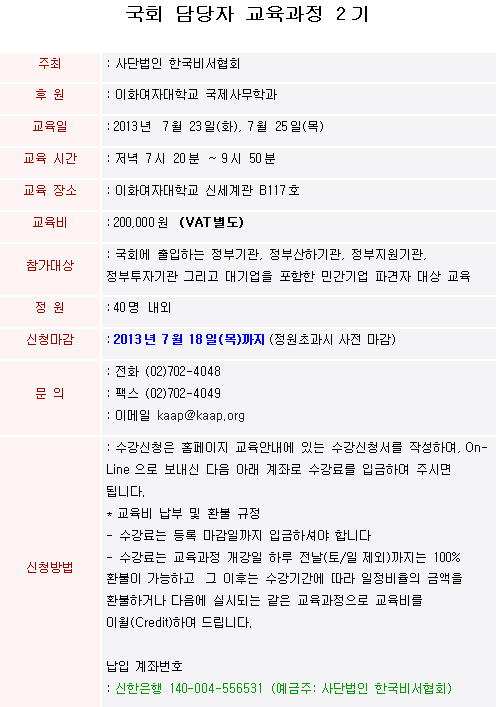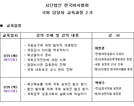 ±¹È¸ ´ã´çÀÚ ¾ç¼º°úÁ¤ Á¦ 2±â ¸ðÁý