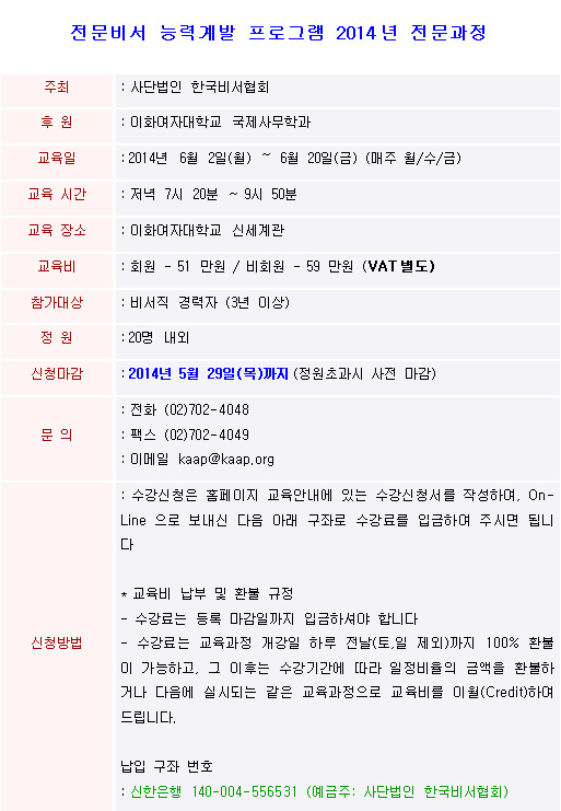 Àü¹®ºñ¼ ´É·Â°è¹ß ÇÁ·Î±×·¥ 2014³â Àü¹®°úÁ¤ ¸ðÁý