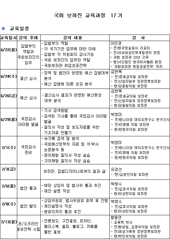 Çѱ¹ºñ¼Çùȸ ±¹È¸º¸ÁÂÁø 17±â ¼ö°»ý ¸ðÁý