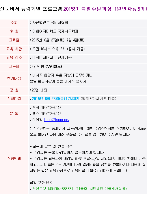 2015³â Àü¹®ºñ¼ ´É·Â°è¹ß ÇÁ·Î±×·¥ Ưº°ÁÖ¸»°úÁ¤ (ÀϹݰúÁ¤6±â) ¸ðÁý