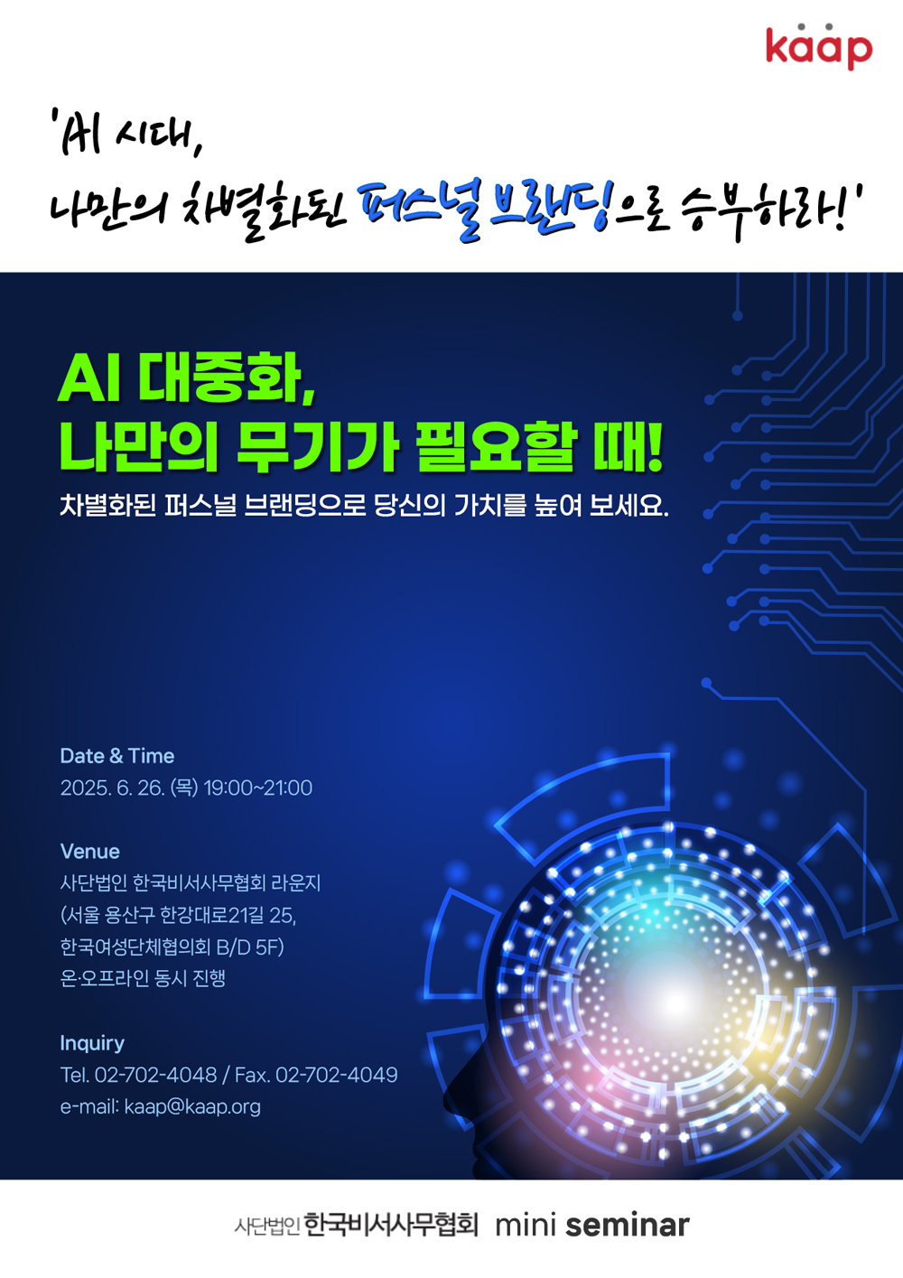 📍 Àå¼Ò: Çѱ¹ºñ¼»ç¹«Çùȸ ¶ó¿îÁö (¿Â¶óÀÎ & ¿ÀÇÁ¶óÀÎ µ¿½Ã ÁøÇà) / Àüȹ®ÀÇ: 02-702-4048