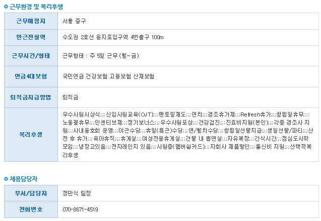 Ãâó: http://www.work.go.kr/empInfo/empInfoSrch/detail/retrivePriEmpDtlView.do?iorgGbcd=CSI&callPage=detail&wantedAuthNo=27493937&rtnUrl=/empInfo/empInfoSrch/list/dtlEmpSrchList.do?len=0&tot=0&relYn=N&totalEmpCount=0&jobsCount=0&mainSubYn=N&lastIndex=1&siteClcd=all&academicGbnoEdu=noEdu&firstIndex=1&pageSize=10&recordCountPerPage=10&preferentialGbn=all&rowNo=0&softMatchingPossibleYn=N&benefitSrchAndOr=O&keyword=%EB%B9%84%EC%84%9C&charSet=EUC-KR&startPos=0&collectionName=tb_workinfo&softMatchingMinRate=+66&softMatchingMaxRate=100&certifiYn=N&preferentialYn=Y&preferential=all&&empTpGbcd=1&onlyTitleSrchYn=N&onlyContentSrchYn=N&serialversionuid=3990642507954558837&resultCnt=10&sortOrderBy=DESC&sortField=DATE&pageIndex=1&pageUnit=10