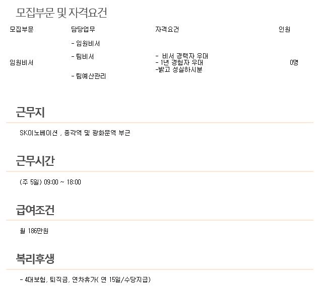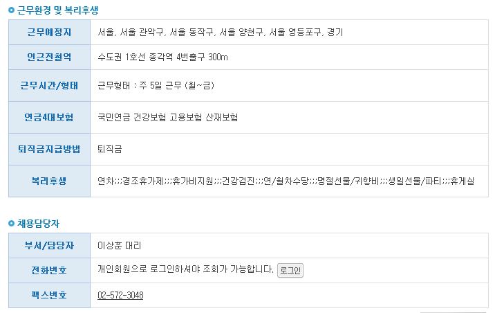 Ãâó: http://www.work.go.kr/empInfo/empInfoSrch/detail/retrivePriEmpDtlView.do?iorgGbcd=CSI&callPage=detail&wantedAuthNo=27530614&rtnUrl=/empInfo/empInfoSrch/list/dtlEmpSrchList.do?len=0&tot=0&relYn=N&totalEmpCount=0&jobsCount=0&mainSubYn=N&lastIndex=1&siteClcd=all&academicGbnoEdu=noEdu&firstIndex=1&pageSize=10&recordCountPerPage=10&preferentialGbn=all&rowNo=0&softMatchingPossibleYn=N&benefitSrchAndOr=O&keyword=%EB%B9%84%EC%84%9C&charSet=EUC-KR&startPos=0&collectionName=tb_workinfo&softMatchingMinRate=66&softMatchingMaxRate=100&certifiYn=N&preferentialYn=Y&preferential=all&&empTpGbcd=1&onlyTitleSrchYn=N&onlyContentSrchYn=N&serialversionuid=3990642507954558837&resultCnt=10&sortOrderBy=DESC&sortField=DATE&pageIndex=2&pageUnit=10