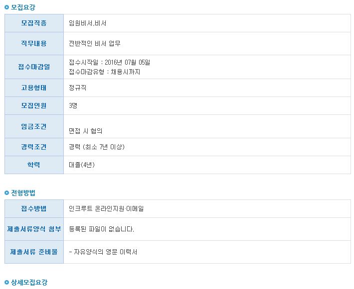 Ãâó: http://www.work.go.kr/empInfo/empInfoSrch/detail/retrivePriEmpDtlView.do?iorgGbcd=CIN&callPage=detail&wantedAuthNo=1607050016006&rtnUrl=/empInfo/empInfoSrch/list/dtlEmpSrchList.do?len=0&tot=0&relYn=N&totalEmpCount=0&jobsCount=0&mainSubYn=N&lastIndex=1&siteClcd=all&academicGbnoEdu=noEdu&firstIndex=1&pageSize=10&recordCountPerPage=10&preferentialGbn=all&rowNo=0&softMatchingPossibleYn=N&benefitSrchAndOr=O&keyword=%EB%B9%84%EC%84%9C&charSet=EUC-KR&startPos=0&collectionName=tb_workinfo&softMatchingMinRate=66&softMatchingMaxRate=100&certifiYn=N&preferentialYn=Y&preferential=all&&empTpGbcd=1&onlyTitleSrchYn=N&onlyContentSrchYn=N&serialversionuid=3990642507954558837&resultCnt=10&sortOrderBy=DESC&sortField=DATE&pageIndex=3&pageUnit=10