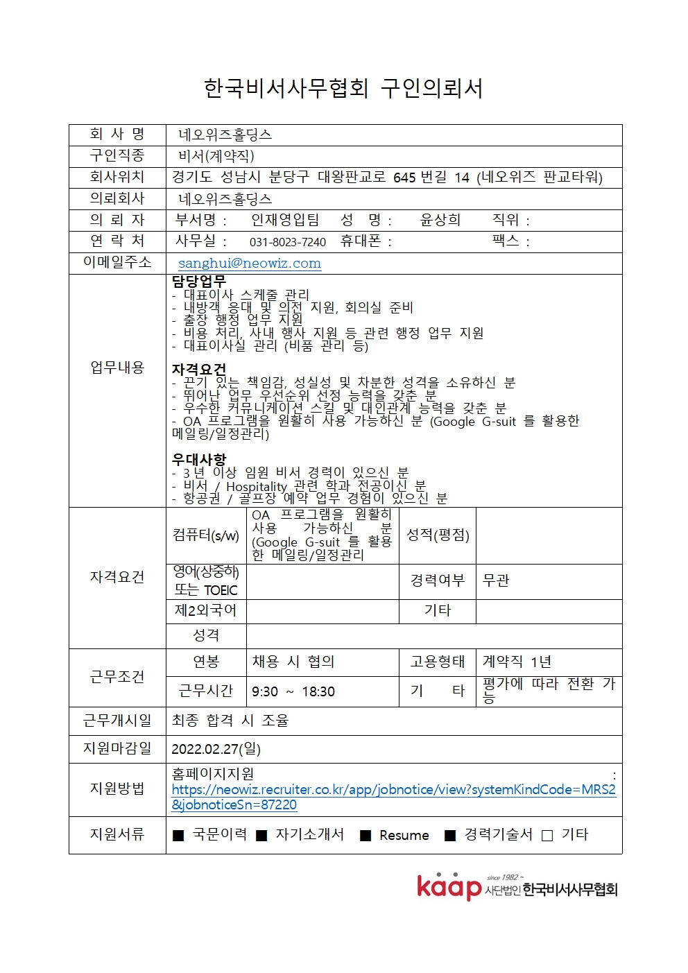 ȨÆäÀÌÁöÁö¿ø : https://neowiz.recruiter.co.kr/app/jobnotice/view?systemKindCode=MRS2&jobnoticeSn=87220