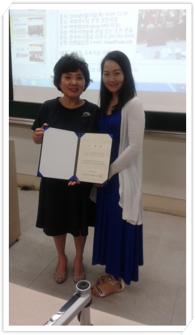 À̹ΰæ ȸÀåÀÌ Çѱ¹ºñ¼Çùȸ¿¡¼ ÇÏ´Â 2014³â ÁÖ¸»°úÁ¤ ÀϹÝ6±â 2014³â 7¿ù 5ÀÏ ¼ö¾÷À» ¸¶Ä¡°í ¼ö·áÁõ ¼ö¿©½ÄÀ» Çß½À´Ï´Ù.