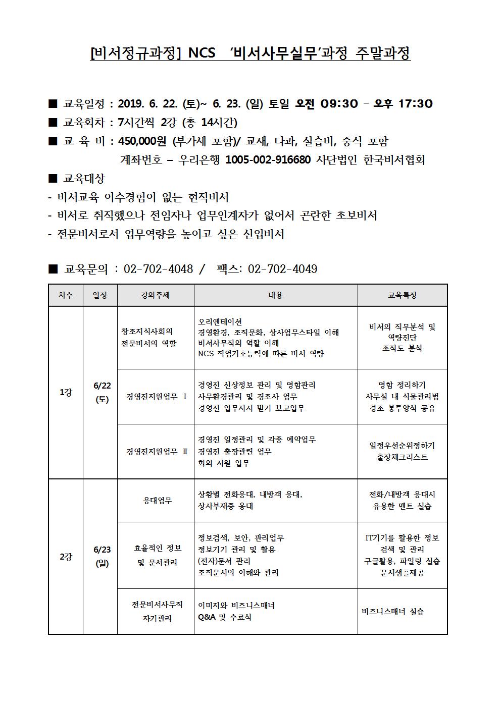 [6/22 ÁÖ¸»¹Ý¸¶°¨] ºñ¼»ç¹«½Ç¹«ÀÚ°úÁ¤ °³° ¾È³» (~6/18±îÁö)
