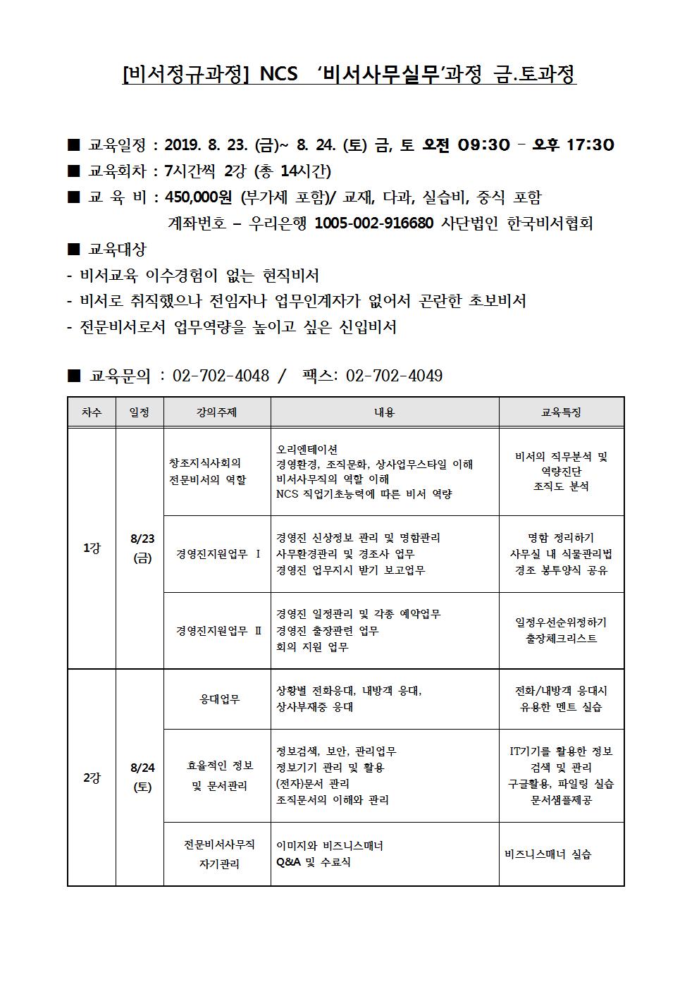 [8/23 ±ÝÅä¹Ý¸¶°¨] ºñ¼»ç¹«½Ç¹«ÀÚ°úÁ¤ °³° ¾È³» (~8/19±îÁö)