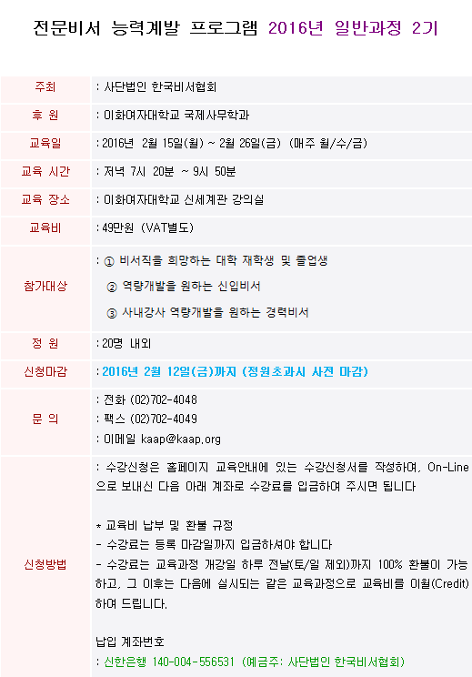Àü¹®ºñ¼ ´É·Â°è¹ß ÇÁ·Î±×·¥ 2016³â ÀϹݰúÁ¤ 2±â ¸ðÁý