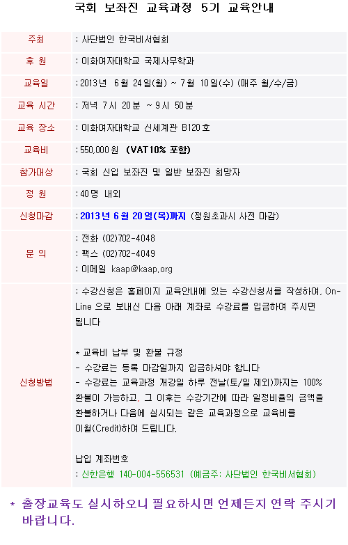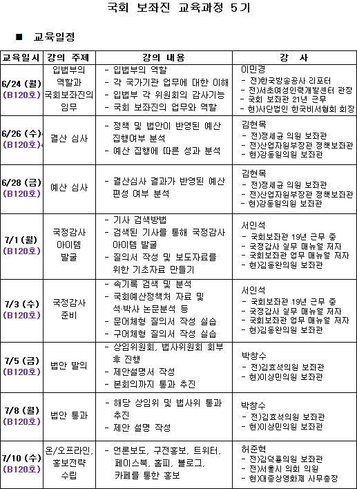 ±¹È¸ º¸Á°ü ±³À°°úÁ¤ 5±â ¼ö°½Åû ¾È³»